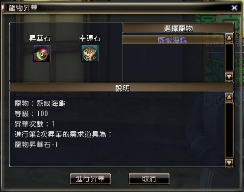 - 寵物需達70級以上才可進行首次昇華。